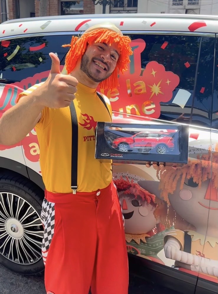 La directora de Arte de Duendes Mágicos, Pía Toro, explicó: “CHERY participa en esta alianza con un duente muy novedoso y entretenido que se llama Pitt”. Es es corredor de autos y el creador de todos los juguetes con ruedas en el Polo Norte, y fue el encargado de conducir el TIGGO 9 cargado de regalos que recorrió las calles de Providencia, sorprendiendo a peatones, familias y niños con regalos y gestos de alegría.