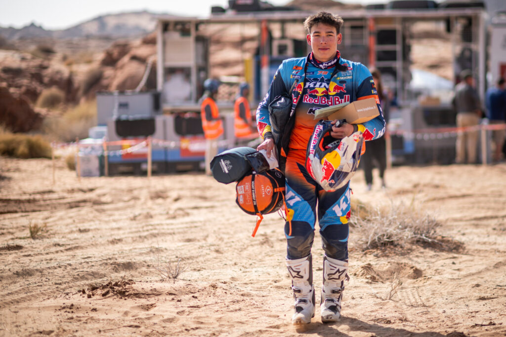 Otra de las historias destacadas fue la del joven español Edgar Canet, quien irrumpió con fuerza en la categoría RallyGP Bike. Tras ganar Rally2 en 2025, el catalán de solo 20 años dio el salto a la élite, y no tardó en dejar huella: se impuso en el prólogo del sábado y ganó la primera etapa del domingo de la primera semana de competencia. Obtuvo además un segundo lugar el lunes que lo dejó a apenas 30 segundos del campeón defensor, Daniel Sanders, aunque la dureza del terreno terminó pasando factura. Antes del día de descanso, Canet cayó al puesto 59, a casi 11 horas del líder. “Las rocas te destrozan las manos y la cabeza”, reconoció el piloto.