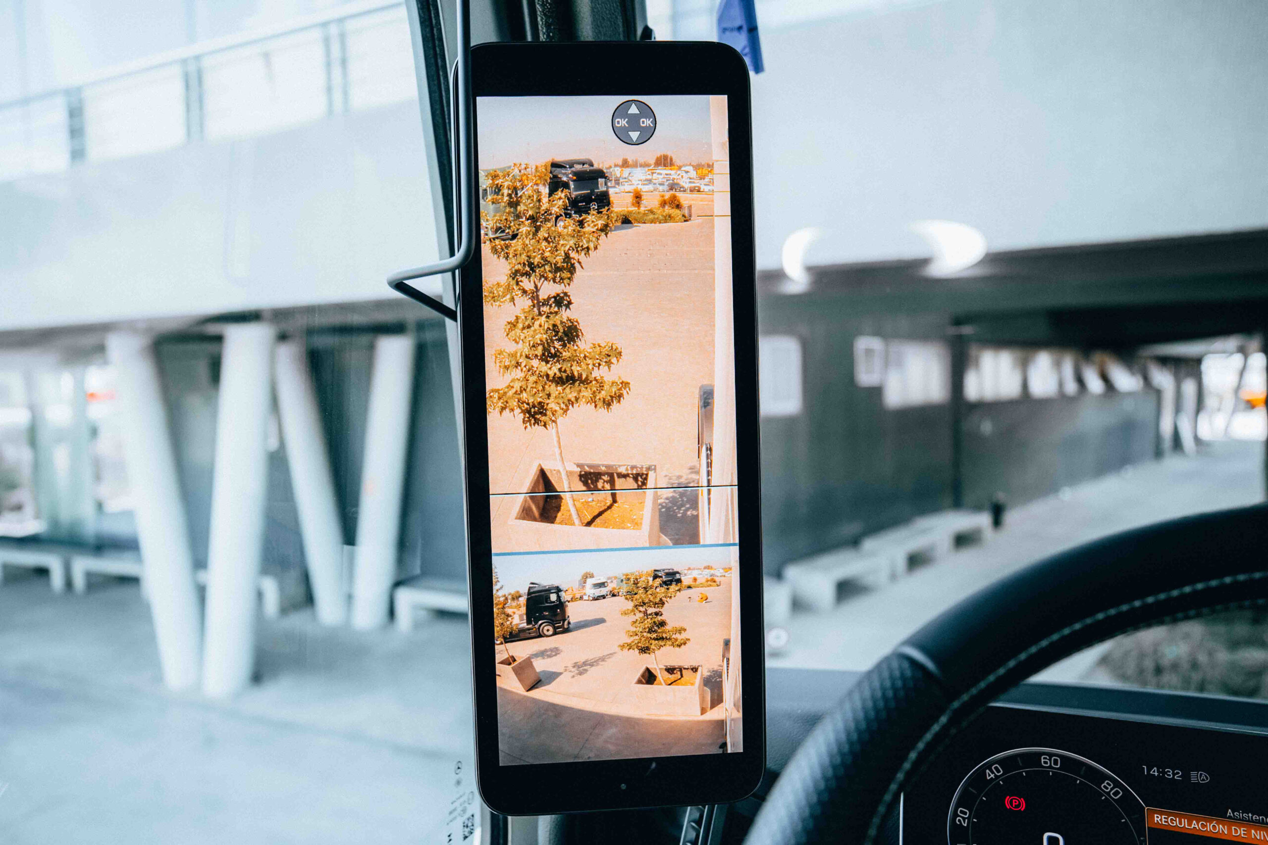 Más allá de su autonomía y eficiencia, el eActros 600 destaca por integrar el ecosistema tecnológico más avanzado desarrollado hasta ahora por Mercedes-Benz Trucks para un vehículo de larga distancia. Su diseño exterior -con líneas limpias y elementos aerodinámicos optimizados- incorpora retrovisores digitales MirrorCam de segunda generación, que reemplazan los espejos tradicionales por cámaras de alta resolución, mejorando la visibilidad, reduciendo resistencia al viento y aportando seguridad operativa tanto en carretera como en maniobras urbanas.